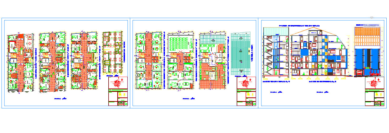 The file also contains detailed building sections showing vertical floor connections, structural components, woodwork placement, service ducts, and elevation elements. The design highlights balcony projections, roof structure, façade treatments, and internal courtyard linkages. Spaces such as common halls, performance stage areas, study zones, and utility blocks are drawn with clear measurements for architectural precision. This DWG is ideal for architects, planners, and designers who require a structured and editable university campus layout that includes classrooms, circulation routes, garden areas, staircases, and block-wise academic planning needed for institutional building projects.