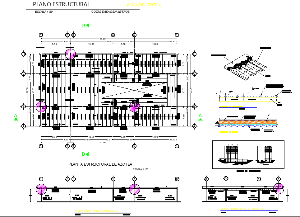 Beam plan and section detail dwg file, including centre line plan detail, dimension detail, naming detail, etc.