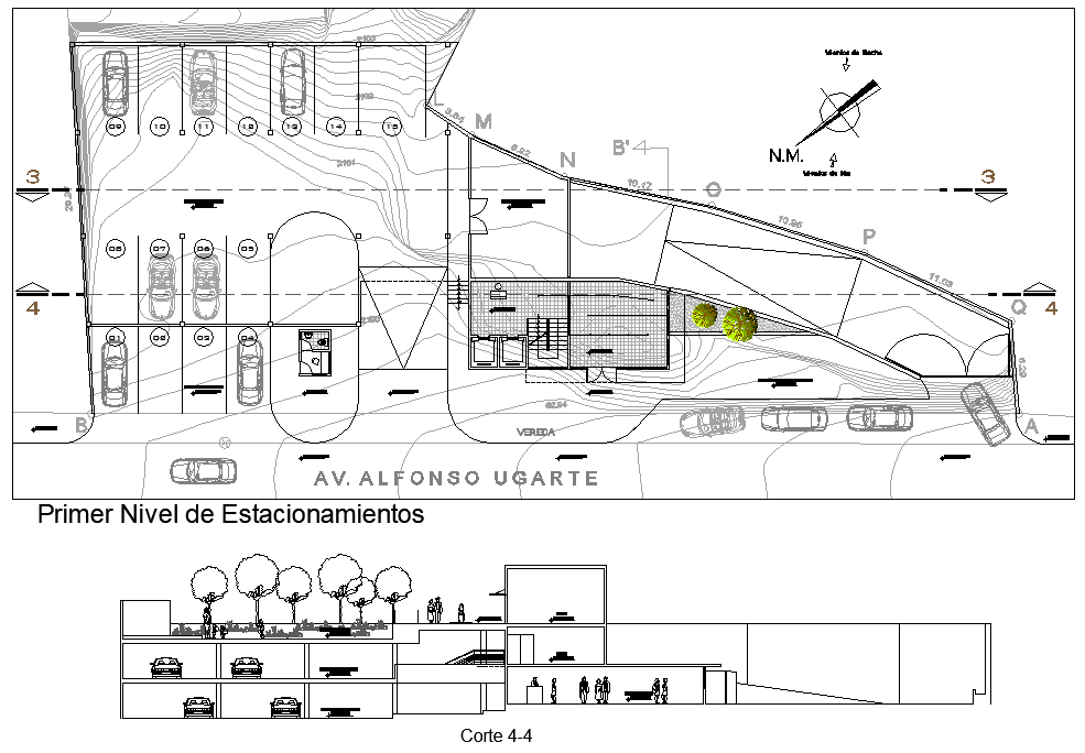 First floor Salon social plan detail dwg file, including plan and section detail, section line detail, dimension detail, landscaping detail in tree and plant detail, etc.