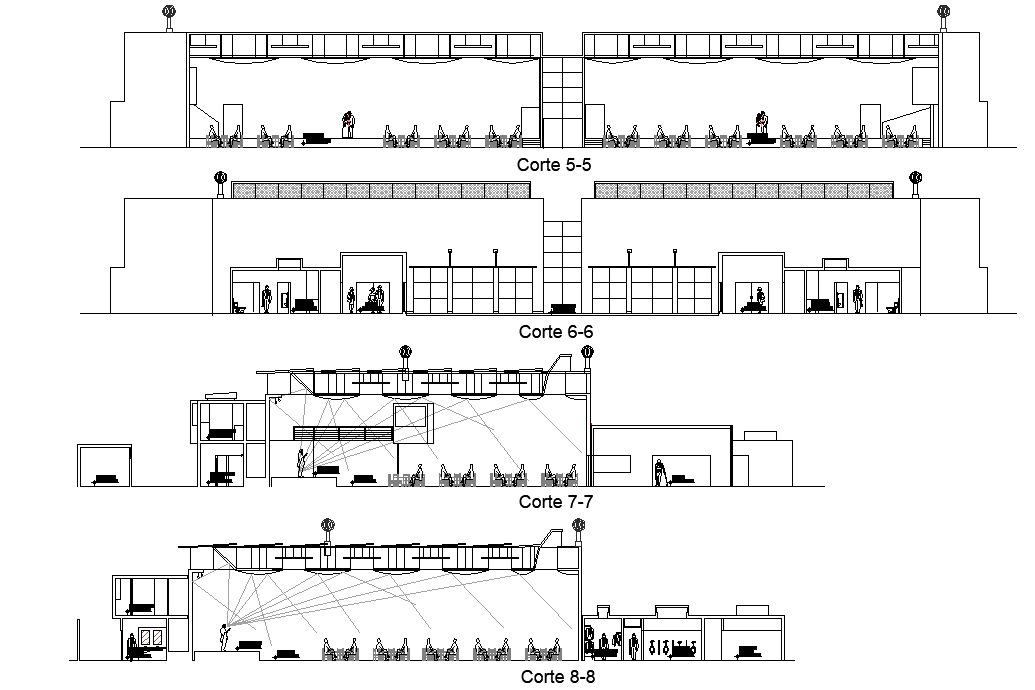 Section Salon social plan detail dwg file, with section 5 detail, section 6 detail, section 7 detail, section 8 detail, etc.