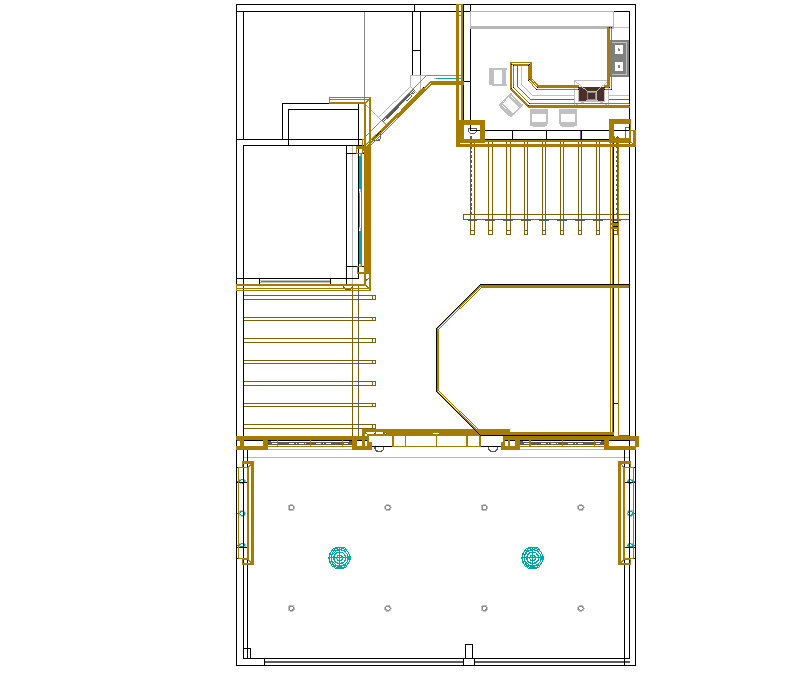 Terrace in Line plan detail dwg file, with wall detail, parabola detail, etc.