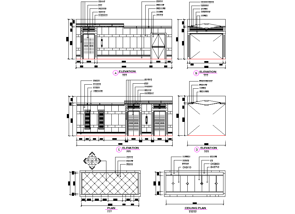 Ceiling plan and section detail dwg file, with cut out detail, dimension detail, naming detail, etc.