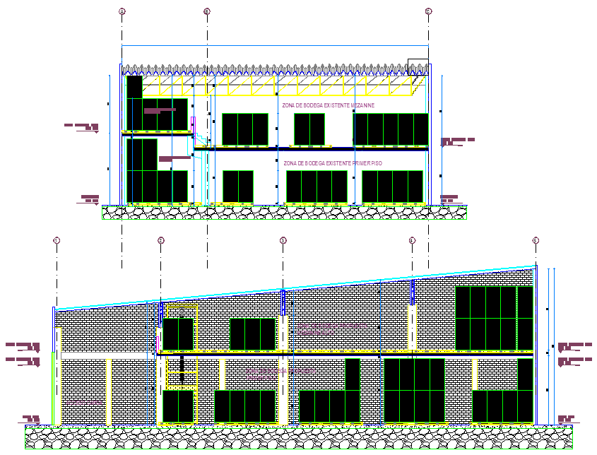 Cellar plan and section detail dwg file, including centre line plan detail, dimension detail, naming detail, stone detail, etc.