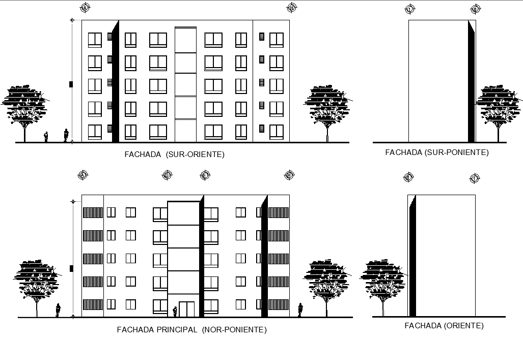 Elevation department building plan detail dwg file, including front elevation detail, left elevation detail, right elevation detail, back elevation detail, etc.