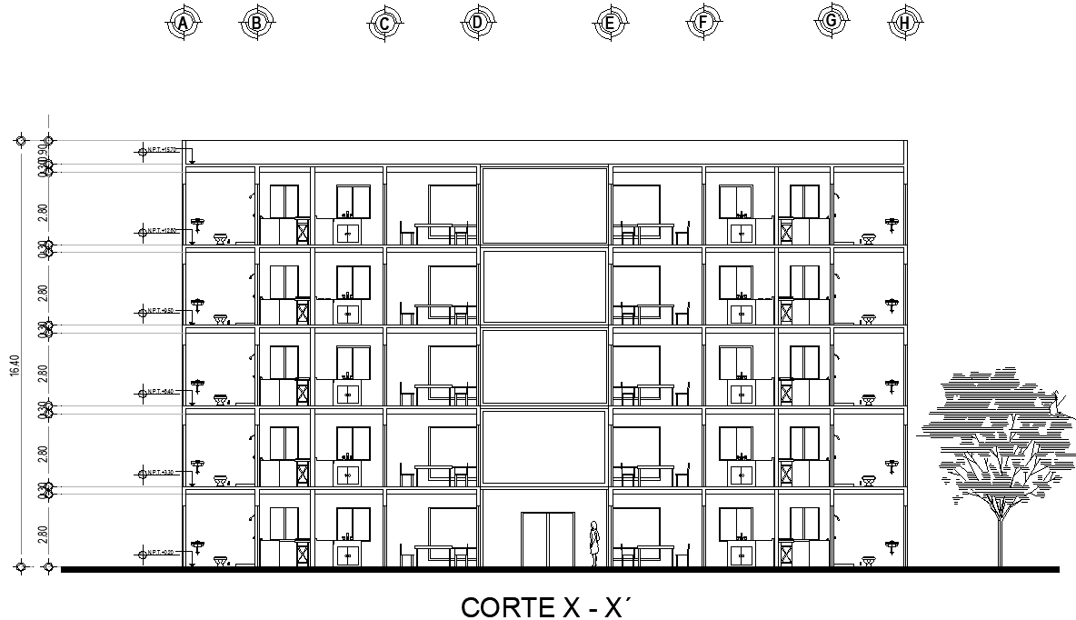 Section department building plan detail dwg file, with centre line plan detail, dimension detail, naming detail, landscaping detail in tree detail, etc.