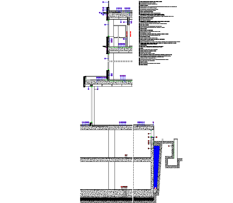 Facade section plan detail dwg file, with numbering in naming detail, concert mortar detail, reinforcement detail, etc.