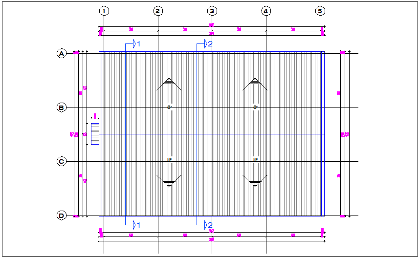 Roof plan for industrial hall plant dwg file in plan with view of area of roof area with
