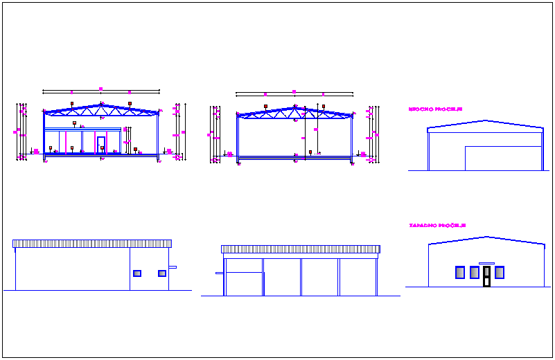 Different side elevation and section view for industrial plant dwg file in elevation with