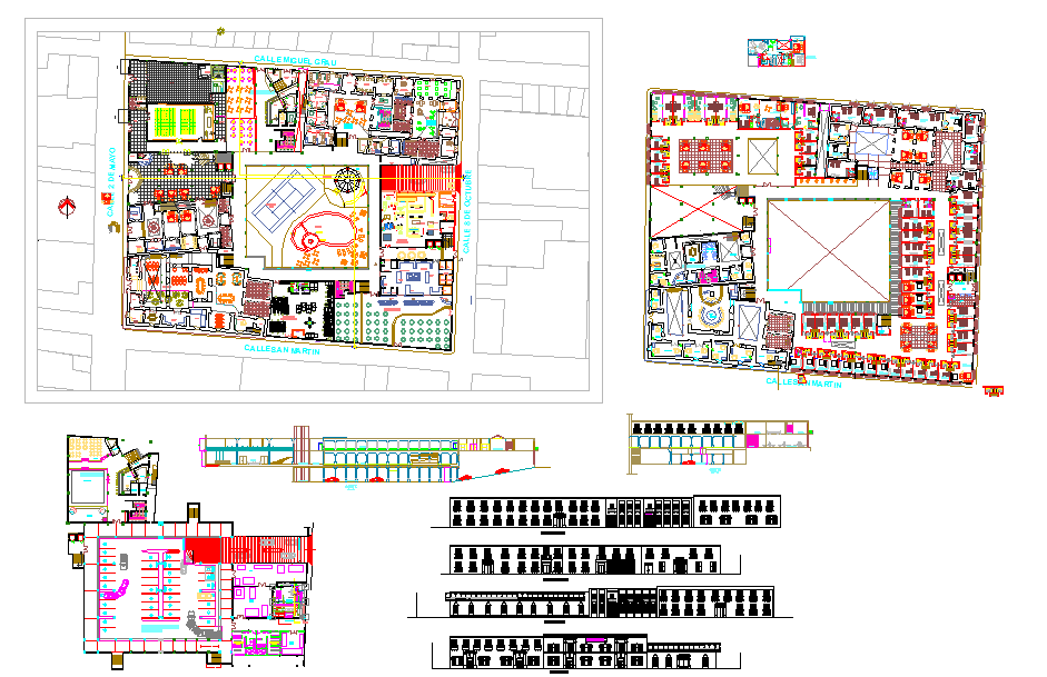 This Hotel Detail Plan DWG provides a complete architectural layout showing detailed room arrangements, furniture placement, circulation paths, and integrated service spaces. The drawing includes bedroom units with bed positioning, wardrobes, seating areas, and connected washrooms arranged around a central courtyard. Additional areas such as kitchen zones, dining clusters, activity rooms, reception points, and landscaped pockets are distributed throughout the site plan. Internal corridors, staircase access, and vertical shafts are clearly displayed with accurate dimensions. The ground floor also includes parking bays and entry routes that connect seamlessly with the surrounding road network.
