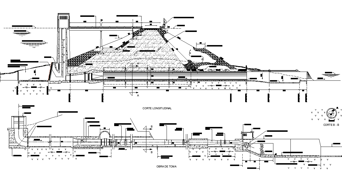 Alvaro obreg on dam detail dwg file, including plan and section detail, dimension detail, naming detail, etc.
