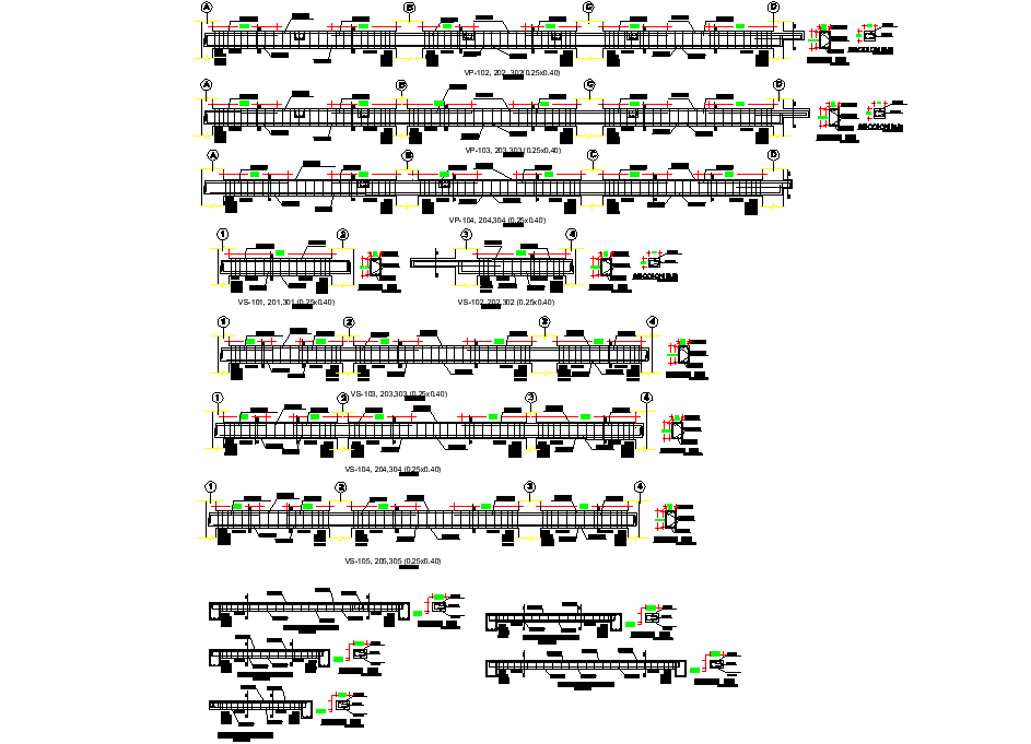Beam section detail dwg file, with centre line plan detail, dimension detail, naming detail, reinfroceemnt detail, etc.