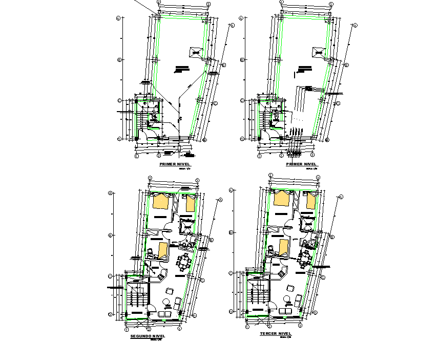 House working plan detail dwg file, with ground floor plan and terrace floor plan centre line plan detail, dimension detail, naming detail, etc.