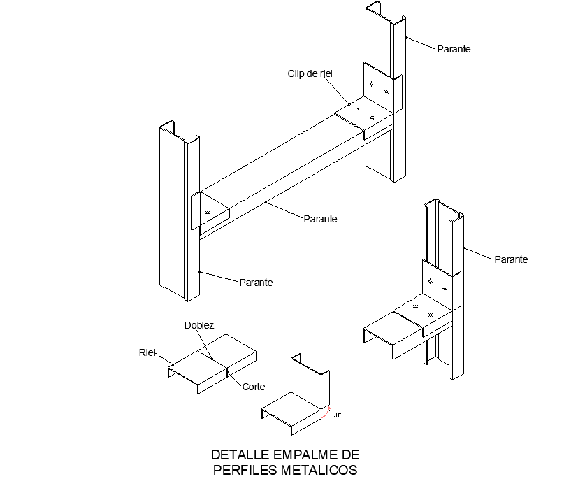 Detail splicing of metal profiles dwg file, with naming detail, section detail, etc