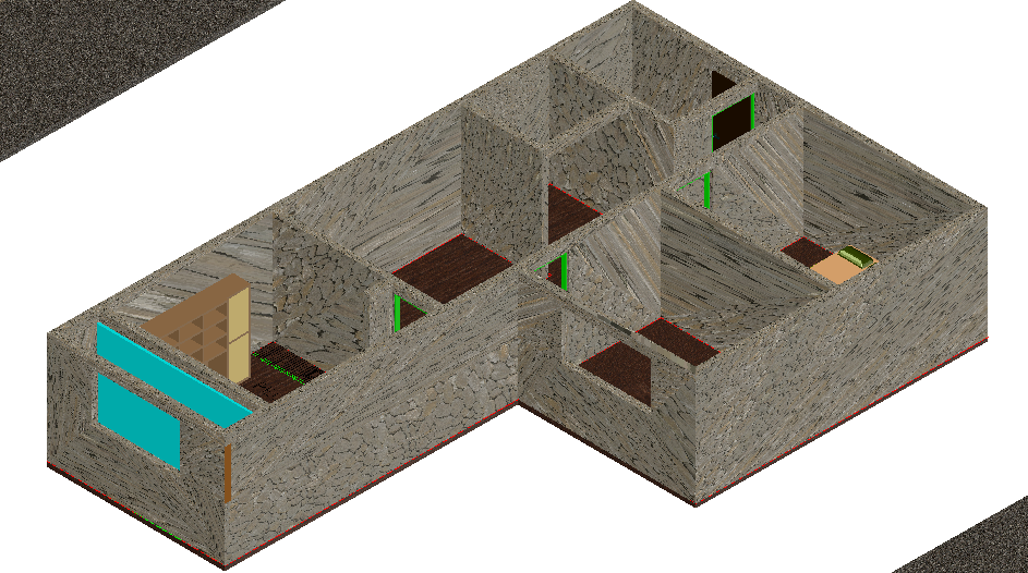 Field stone material 3d view of open house dwg file