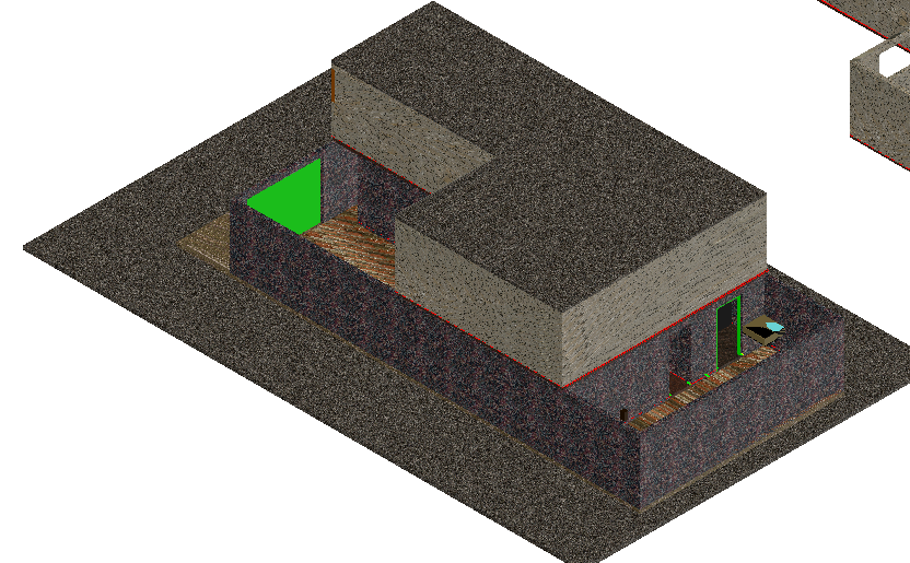 House 3D view design dwg file in view with ground area with entry way,wall and support view with terrace area and door and window area view with designer wall view of 3d of house.