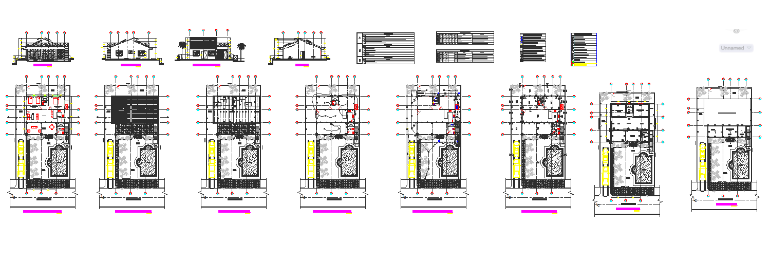 This Beach House Room Detail DWG showcases a complete architectural layout of a multi-level beachside residence, featuring room-wise planning, furniture layout, floor distribution, and structured elevations. The drawing includes living areas, bedrooms, kitchen zones, washrooms, staircase alignment, terrace spaces, and open balconies strategically positioned for natural ventilation. Each floor is presented with clear wall divisions, door placements, window openings, and circulation paths. The layout highlights landscape elements such as pathways, outdoor seating pockets, and beachfront views designed to complement a coastal living environment.