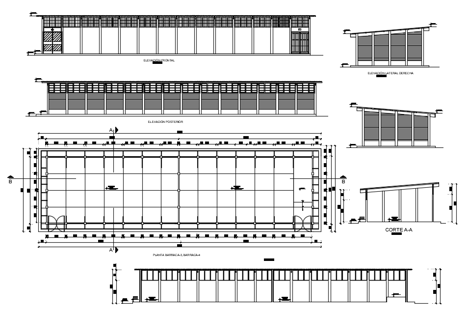 University shops dwg file. Structural detail plan with dimension detail, naming detail, plan and section detail, etc.