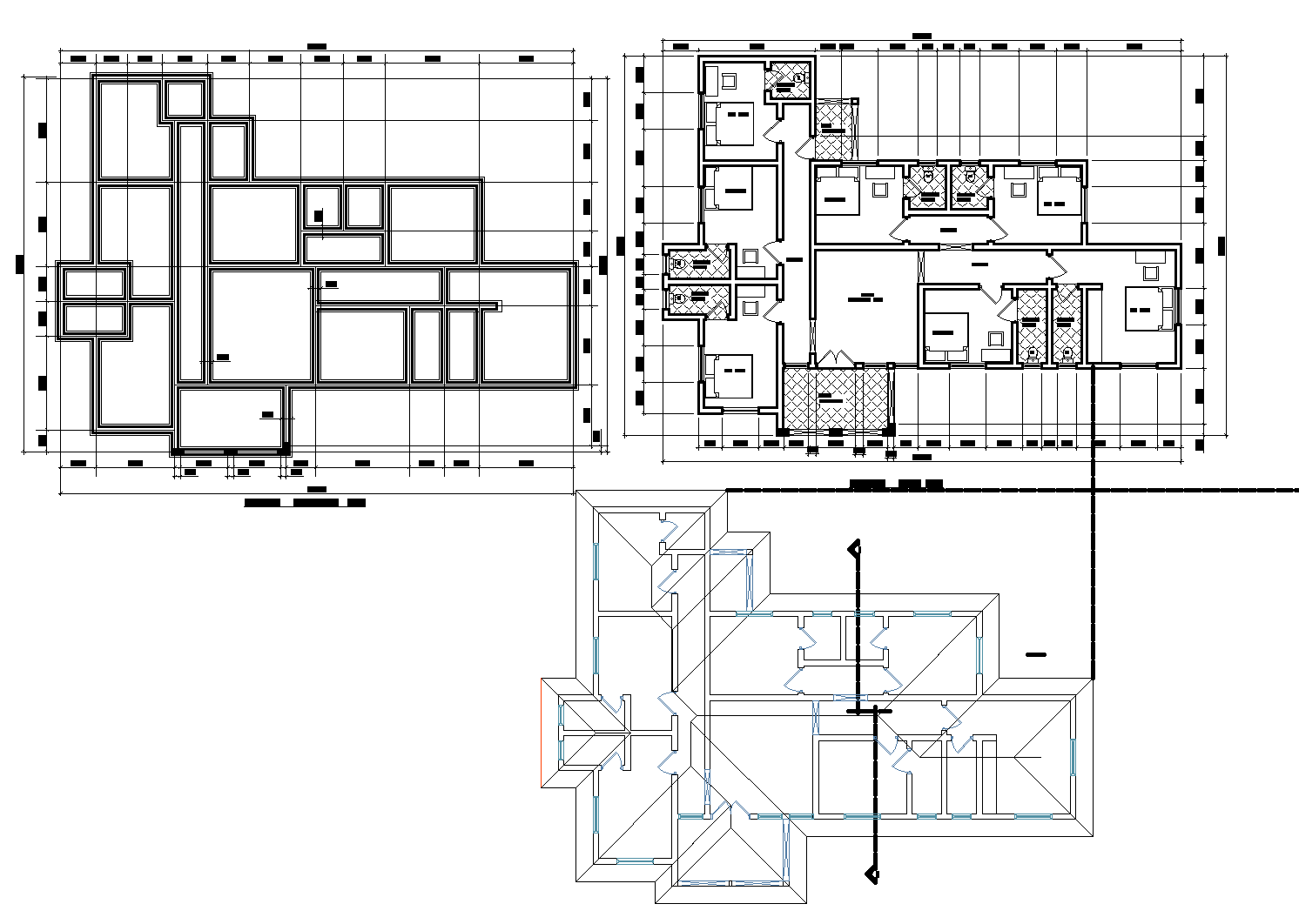 Detailed guest house plan. The plan is firstly shown with dimensions. Then, it has been furnished. Later with sections. Plan with total detailed or furniture placement has been shown. Furniture that includes bed, table, chair, washroom, wardrobe, etc.,
