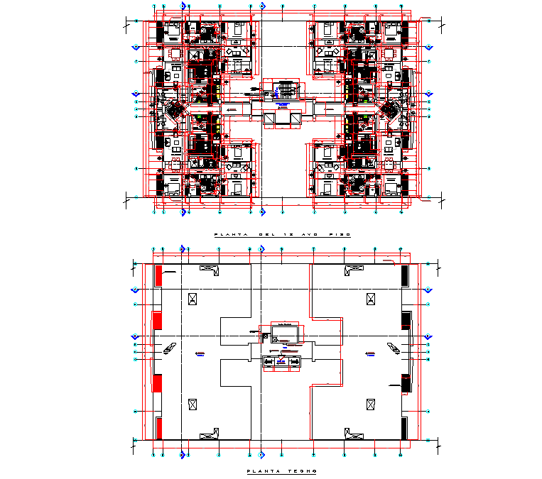 Elevation High rise building plan detail dwg file, incluiding dimension detail, centre line plan detail, leveling, etc.