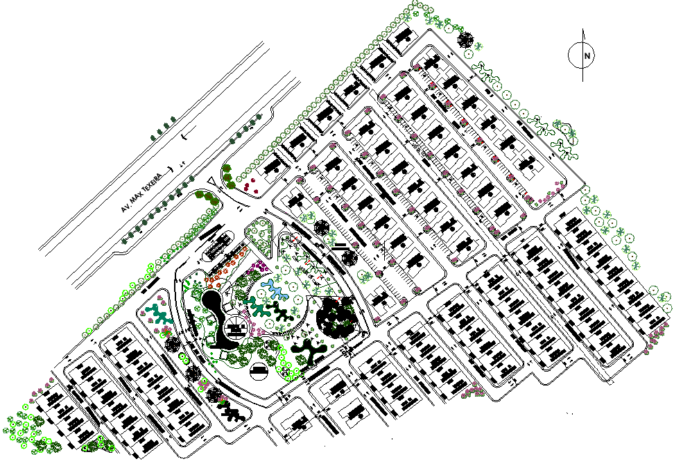 Project residential condo minimum plot detail dwg file, with north direction detail, landscaping detail in tree and plant detail, block divided detail, etc.