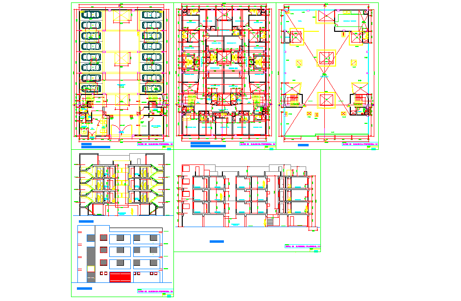 Hotel Layout Plan DWG with Parking Bays Rooms and Elevation Details