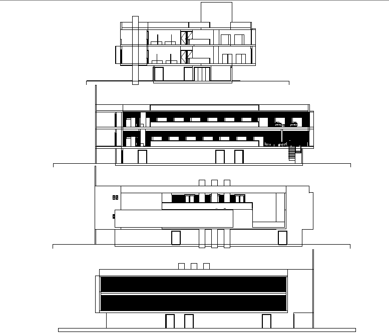 Elevation exhibition museum plan detail dwg file, with front elevation detail, right elevation detail, left elevation detail, back elevation detail, etc.