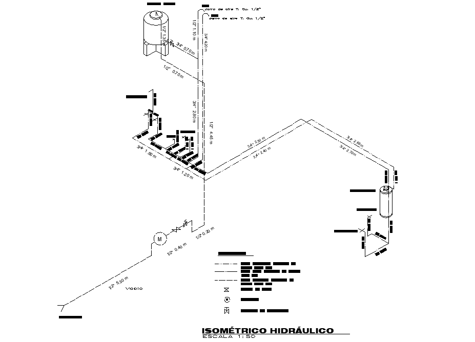 Isometric hydraulic plan detail dwg file, with legend detail naming detail, scale 1:50 detail, etc
