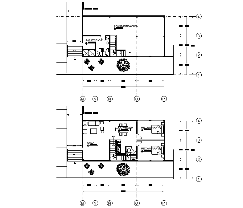 Ware house plan detail dwg file, with centre line plan detail, dimension detail, naming detail, landscaping detail in tree and plant detail, stair detail, etc.