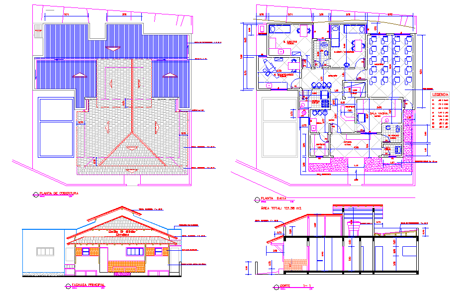 Clinic Plan 123 sqm with Roof Layout Floor Plan and Full Elevation DWG