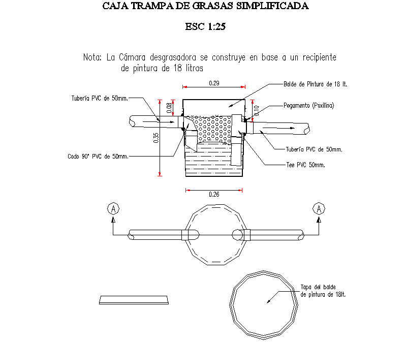 Pipe plan and section detail dwg file, incluidng scale 1:25 detail, section line detail, dimension detail, naming detail, etc.