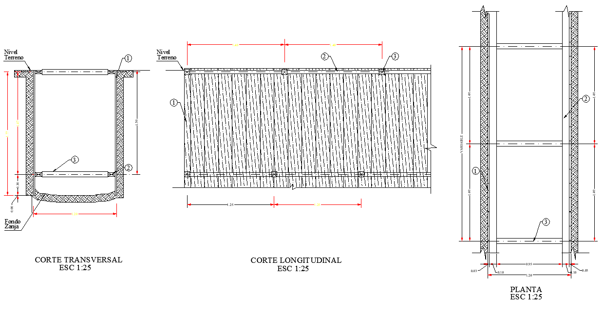 Wood timbering plan and section detail dwg file, with scale 1:25 detail, dimension detail, naming detail, section detail, etc.