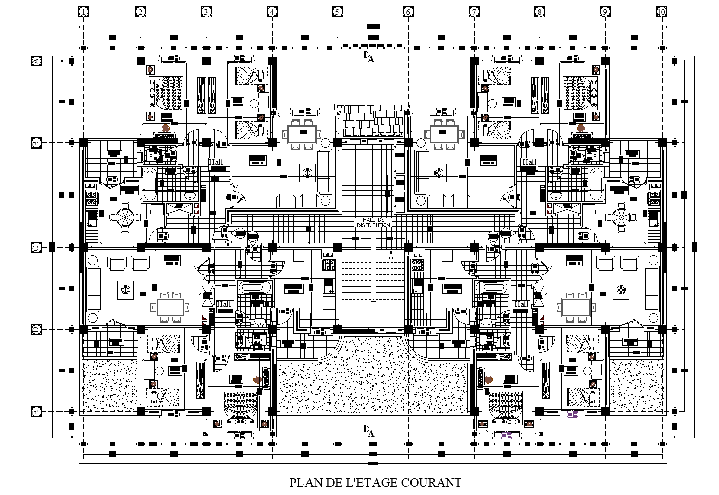 Detailing of apartment tower plan detail dwg file.