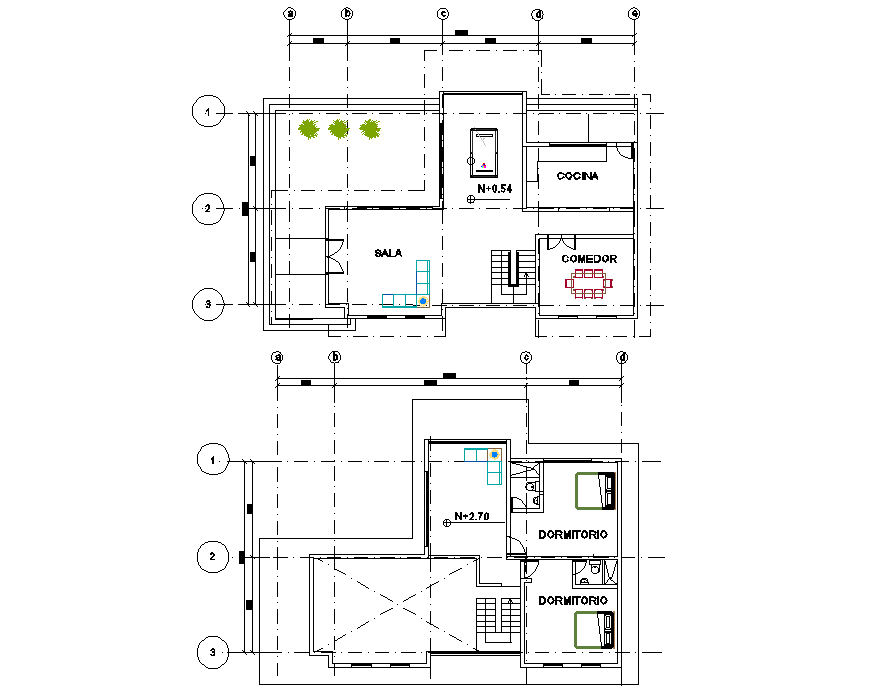 Country house planing detail dwg file, with centre line detail, dimension detail, naming detail, toilet detail, landscaping detail in tree and plant detail, etc.