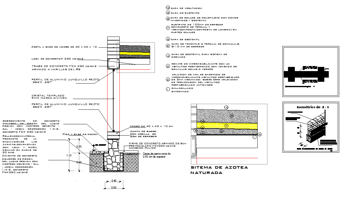 Section by facade detail dwg file, with dimension detail, naming detail, isometric view detail, bolt nut detail, etc.