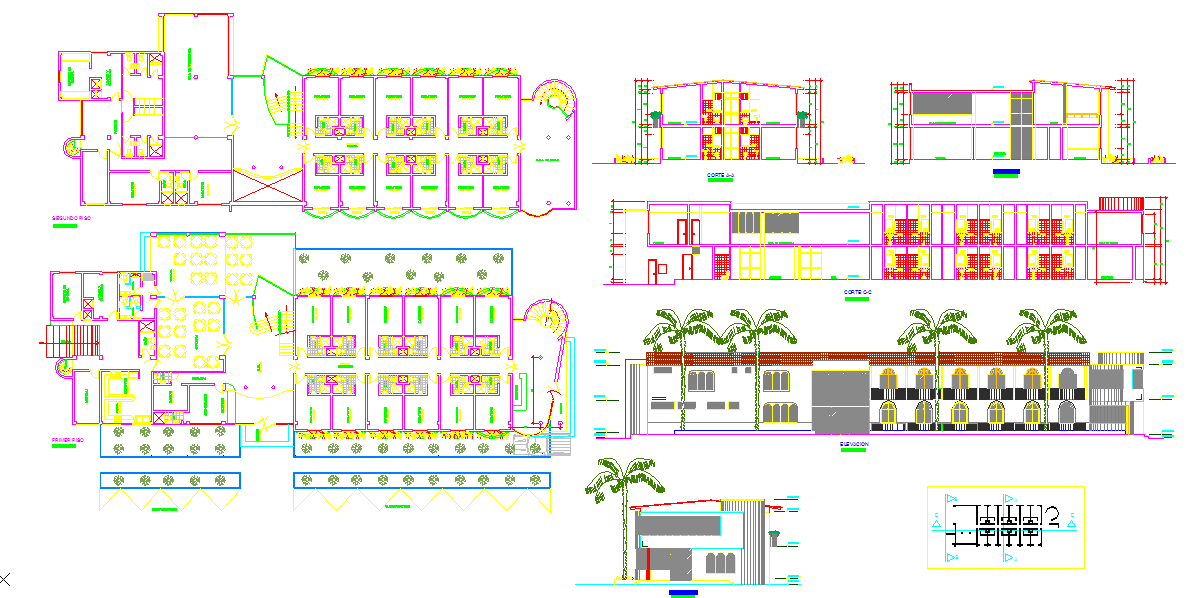Hotel Detail Project with Room Layouts and Elevation Designs DWG