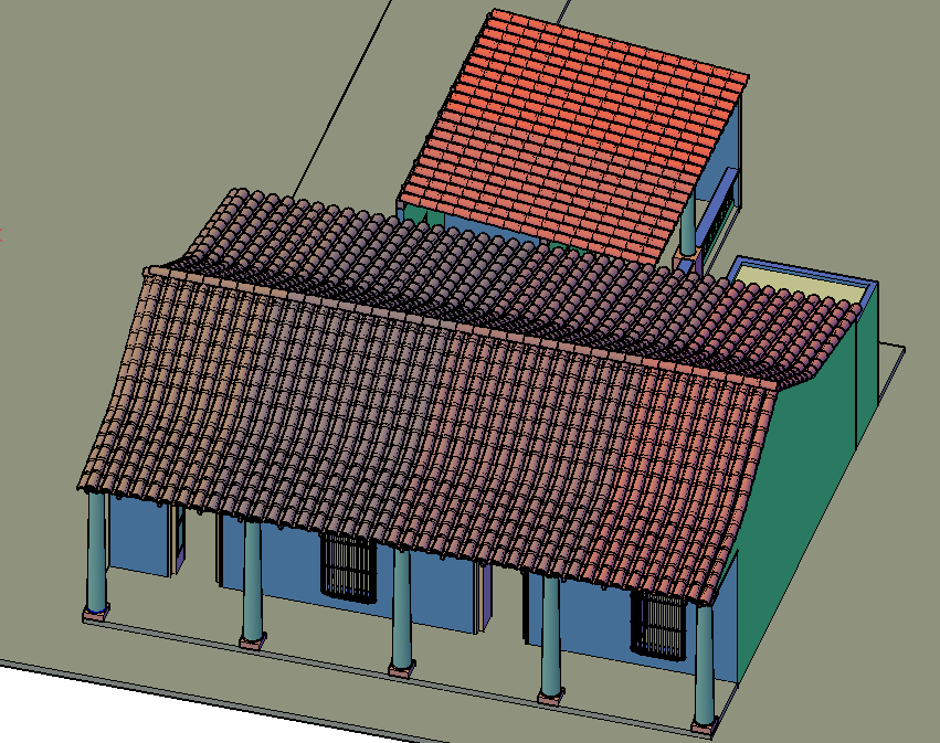 Colonial house 3 d plan detail dwg file, incluidng roof plan detail, column design detail, furniture detail in door and window detail, etc.