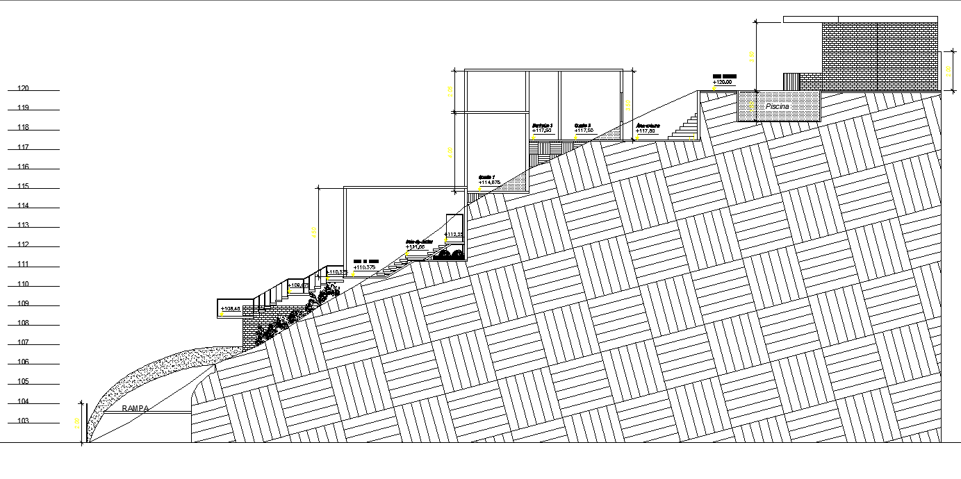 Casagraja topography plan detail dwg file, with levelling detail, dimension detail, naming detail, ramp detail, etc.