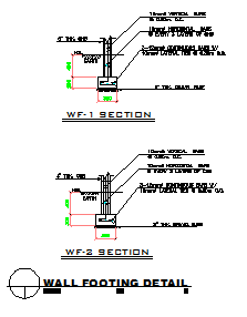 Here the Wall footing detail design drawing with 2 type section detail with specification detail and indicate all detailing in this auto cad file.