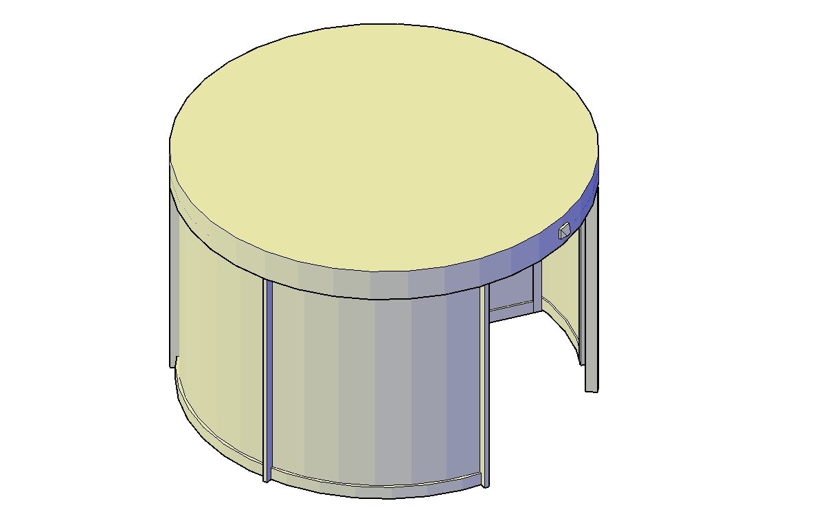 Revolving door plan. Consisting of three or four doors that hang on a central staff and rotate a vertical axis within a cylindrical enclosure.
