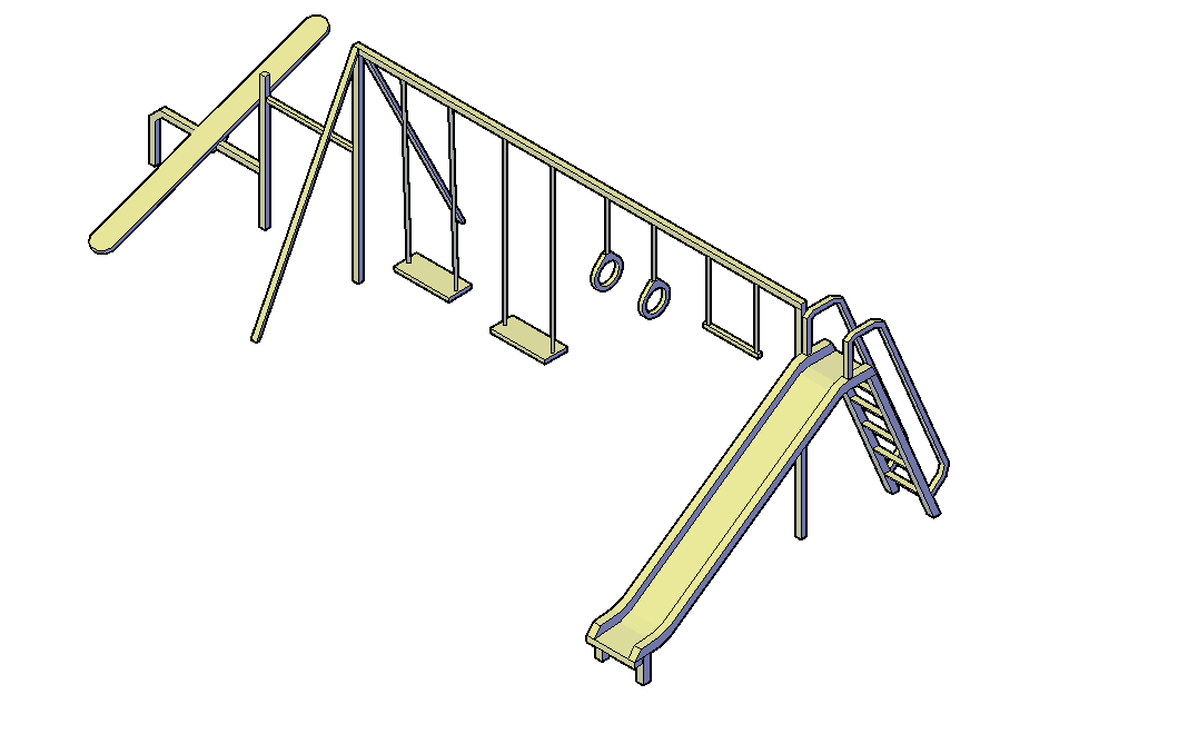 Playground slides and swing plan. Steel railing detail, Sliders for kids, with detailed dimensions.