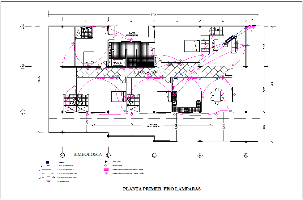 First floor plan of electrical view with lamp for housing dwg file in plan with view of area view and view of electrical line view with point of electrical lamp view with point view and electrical legend view with necessary detail.