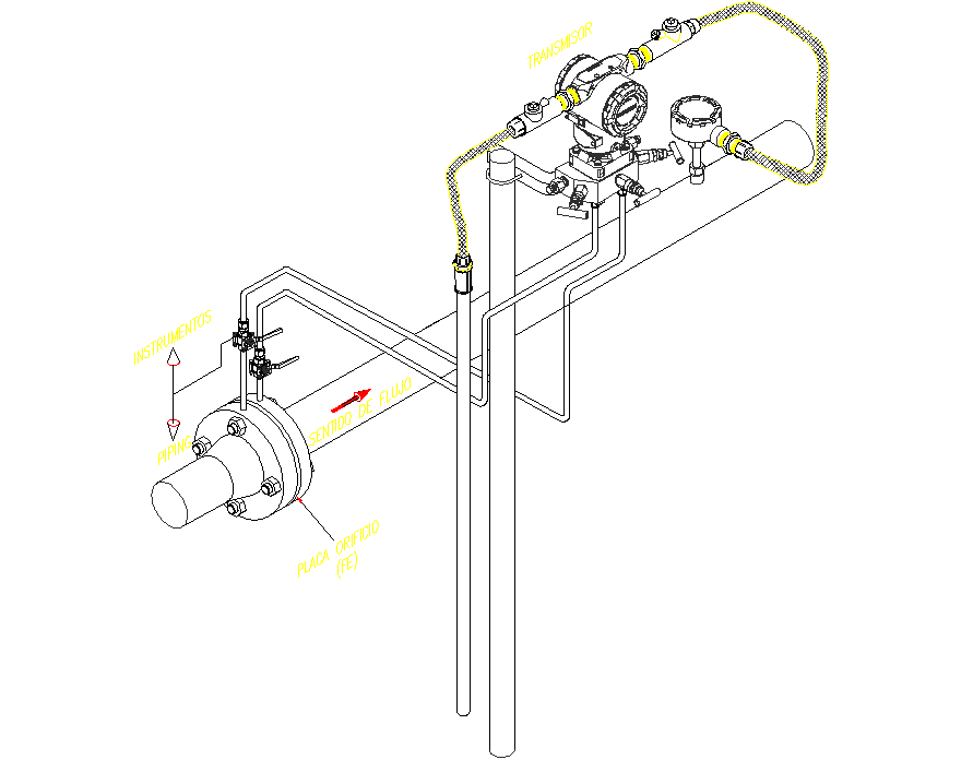 Flow transmitter 3 D plan detail dwg file, with naming detail, lock system detail, etc.