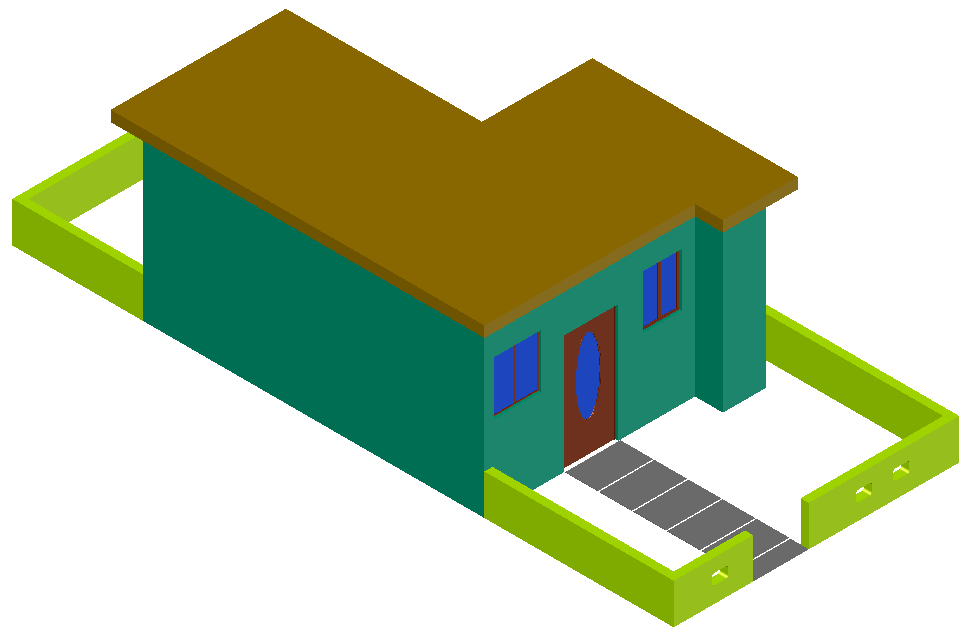 Urbanized house 3 D plan detail dwg file, with front elevation detail, stair detail, furniture detail with door and window detail, etc.