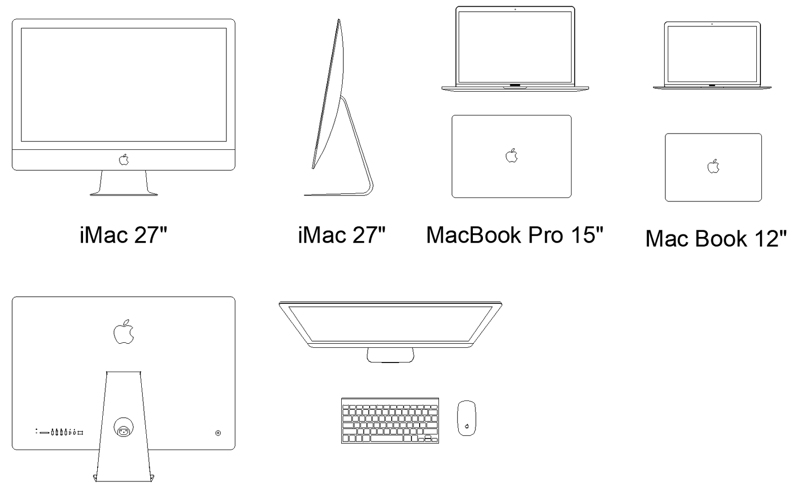 Computers plan. Computers with different sizes and style. The front view plan with detailing.