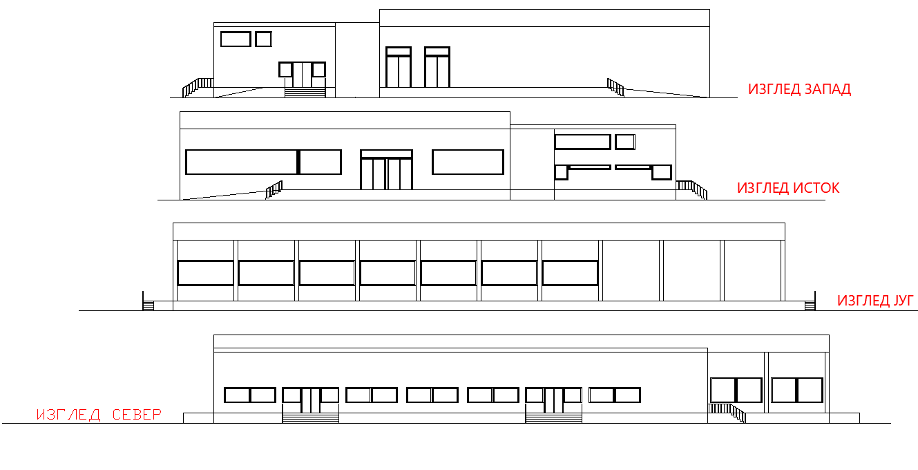 Elevation Industrial hall plan detail dwg file, with front elevation detail, right elevation detail, left elevation detail, side elevation detail, etc.’