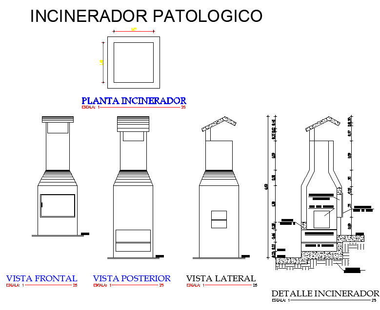 Pathological incinerdor plan and section detail dwg file, including dimension detail, naming detail, section detail, etc.