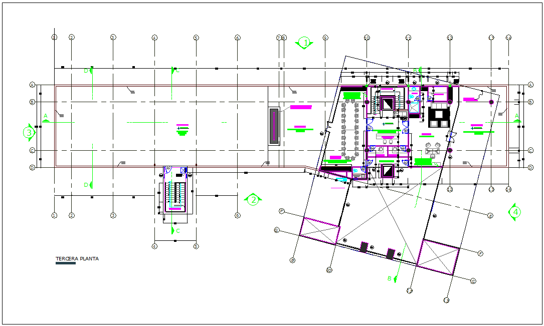 Terrace plan of municipal building dwg file in plan with view of area distribution and terrace area view with carpet floor,stair and washing area view,shop area view and terrace area view with door and
