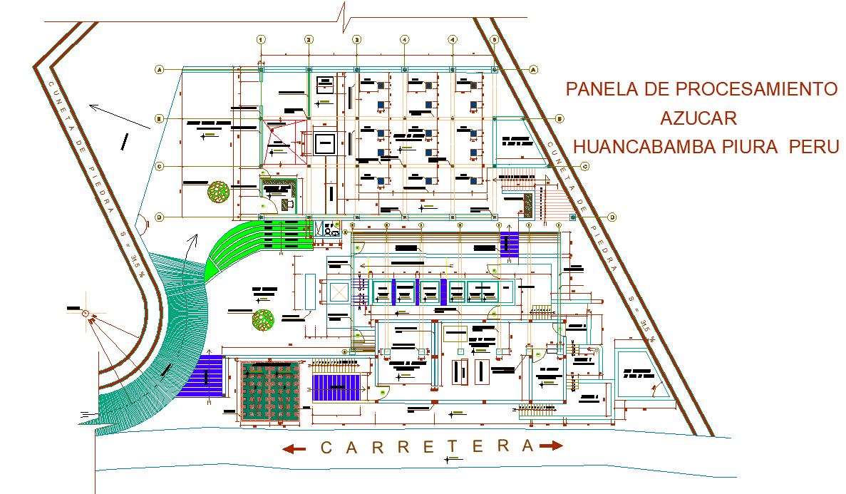 Sugar process plan detail dwg file, with centre line plan detail, dimension detail, naming detail, stair detail, etc.