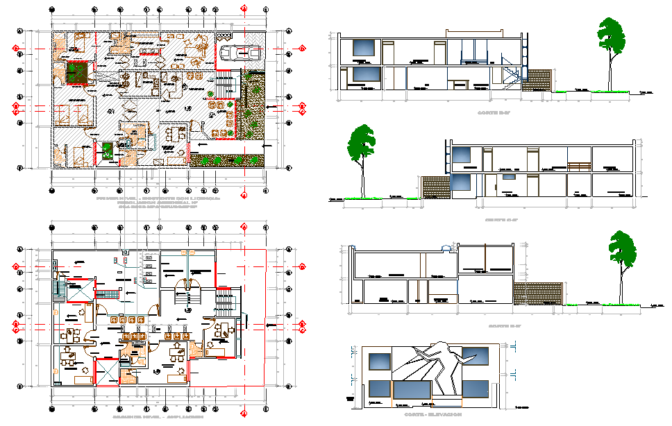 The second level presents additional Consultorios, Sala de Rayos Laser, Sala de Ultrasonido, an Administracion area, and a fully mapped hall with exact measurements like four point sixty five meters, two point sixty seven meters, and two point forty meters. Stair dimensions, including steps of zero point fifteen meters and counter steps of zero point twenty five meters, help professionals understand movement design. This expansion plan provides architects, civil engineers, interior designers, and builders with accurate room sizing, elevation markings, and spatial layout essential for professional project development.