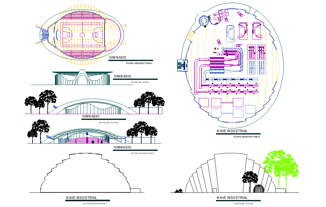 Glass packs factory plan detail dwg file, including landscaping detail in tree detail, front elevation detail, side elevation detail, badminton game detail, etc.